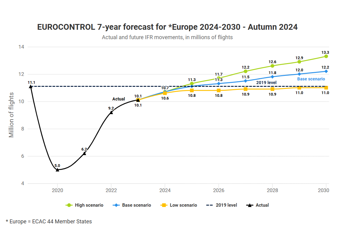 EUROCONTROL latest air traffic forecast covering 2024-2030