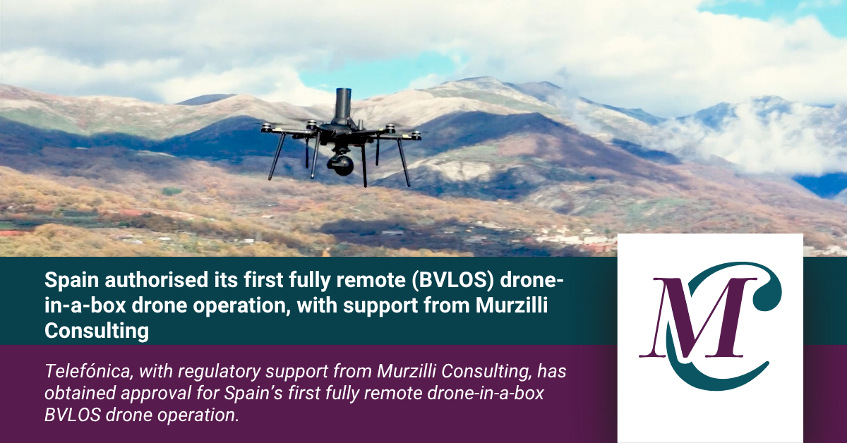 Murzilli Consulting, the consultancy firm offering 360° services for regulation, technology and strategy for innovative aviation stakeholders, has successfully supported Telefónica, Spain’s leading telecommunications company, in obtaining authorisation from the Agencia Estatal de Seguridad Aérea (AESA), the Spanish Civil Aviation Authority, for Spain’s first fully remote drone-in-a-box beyond visual line of sight (BVLOS) drone operation.
